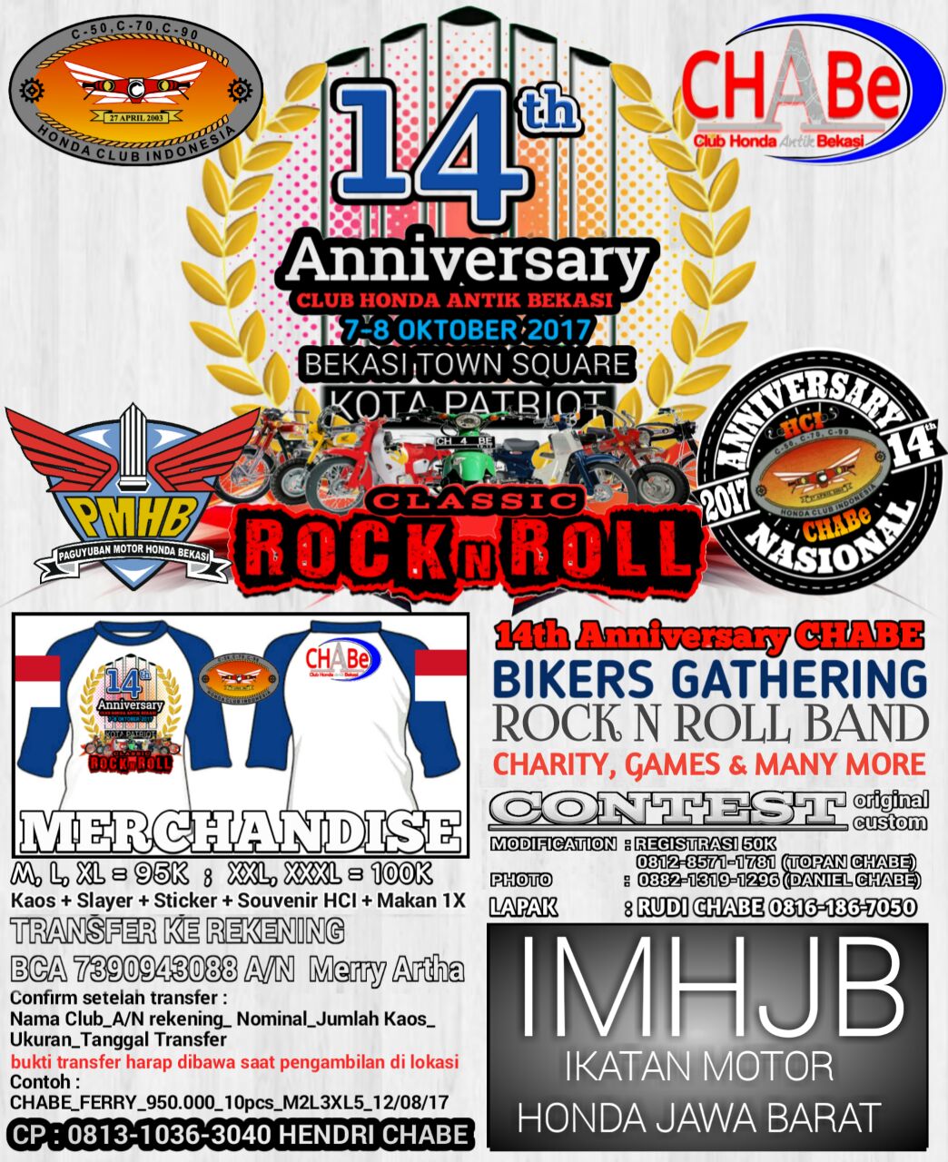 Tunggu apa lagi kawan-kawan semua, jika tidak ada agenda pada 7-8 Oktober 2017 nanti, kedatangan kawan-kawan anggota klub yang tergabung dalam Ikatan Motor Honda Jawa Barat akan sangat berarti di acara 14th Anniversary Club Honda Antik Bekasi.