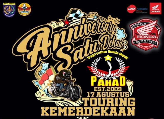Alhamdulillah kami telah melaksanakan anniversary 1 dekade dan MUBES kepengurusan Paguyuban Honda Depok dan semoga untuk kedepannya PAHAD selalu berjaya dan menjadi pelopor keselamatan berlalulintas Khusus nya untuk wilayah depok.