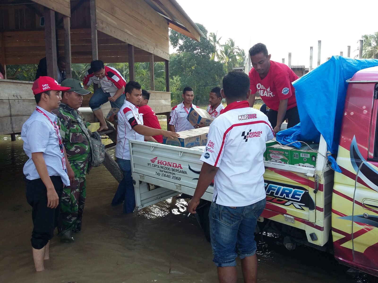 Capella Honda bantu korban bencana banjir yang melanda wilayah Aceh Timur Selasa (9/2). Tingginya curah hujan dan debit air semakin naik menjadi salah satu faktor yang menyebabkan