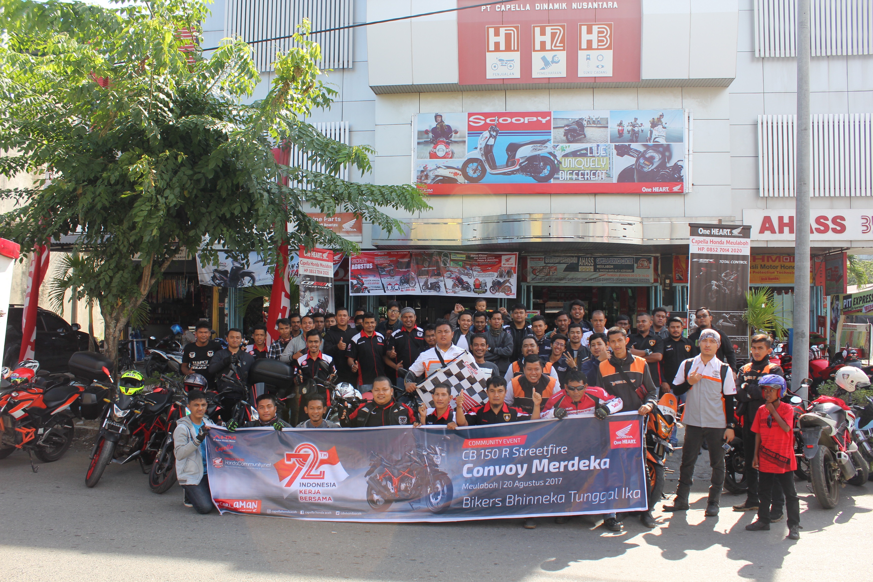 Kegiatan yang dilaksanakan pada Minggu, 20 Agustus 2017 digagas PT. Capella Dinamik Nusantara (Capella Honda) untuk menyemarakkan semangat persatuan Komunitas Honda di Aceh pada umumnya dan di Meulaboh khususnya dengan terus meningkatkan kebersamaan dan semangat Kemerdekaan 17 Agustus 1945. Dalam kegiatan ini para Bikers Honda Meulaboh melakukan konvoi dari halaman Capella Honda Meulaboh menuju Makam Teuku Umar yang terletak di Desa Mugo, Aceh Barat. Sesampainya disana, para bikers segera membersihkan area disekitar makam dengan alat kebersihan yang telah disiapkan. “Kehadiran Bikers Honda Meulaboh memang diniatkan untuk mengenang jasa Pahlawan Nasional Teuku Umar dengan cara kongkrit yaitu membersihkan Area Makam agar pengunjung lainpun nyaman ketika hendak berziarah dan berdo’a”, ucap Nurman Pembina Komunitas Honda Wilayah Aceh.