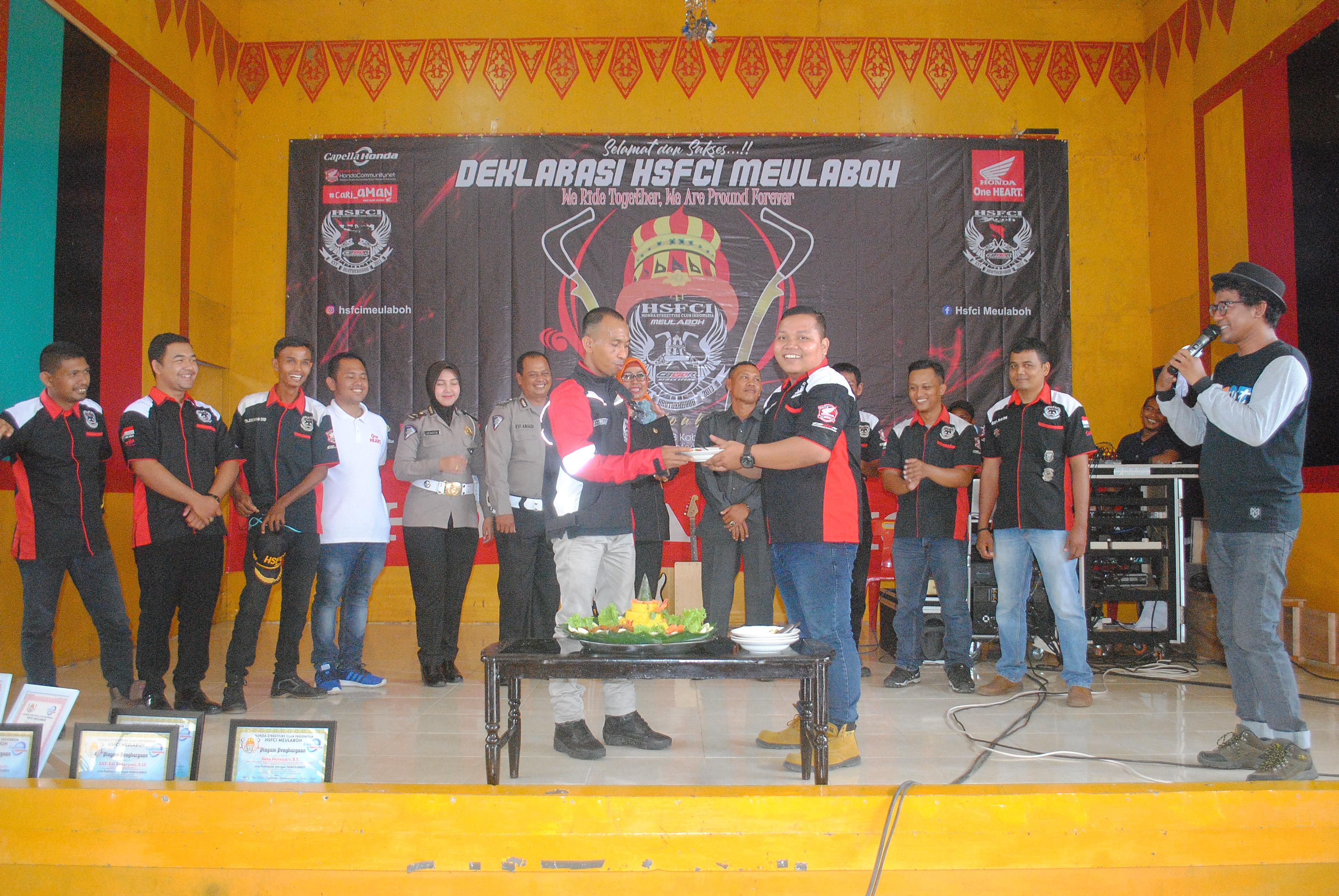 Untuk memperoleh legalitas sebagai club motor dari Pengurus Nasional HSFCI , Club yang berdomisili di meulaboh aceh barat ini mengadakan Deklarasi atas pengukuhan HSFCI Meulaboh  sebagai club motor yang memberikan nuansa baru serta mengubah mindset masyarakat bahwa club motor tidak berarti ugal ugalan, preman, bandel dan hal negative lain nya